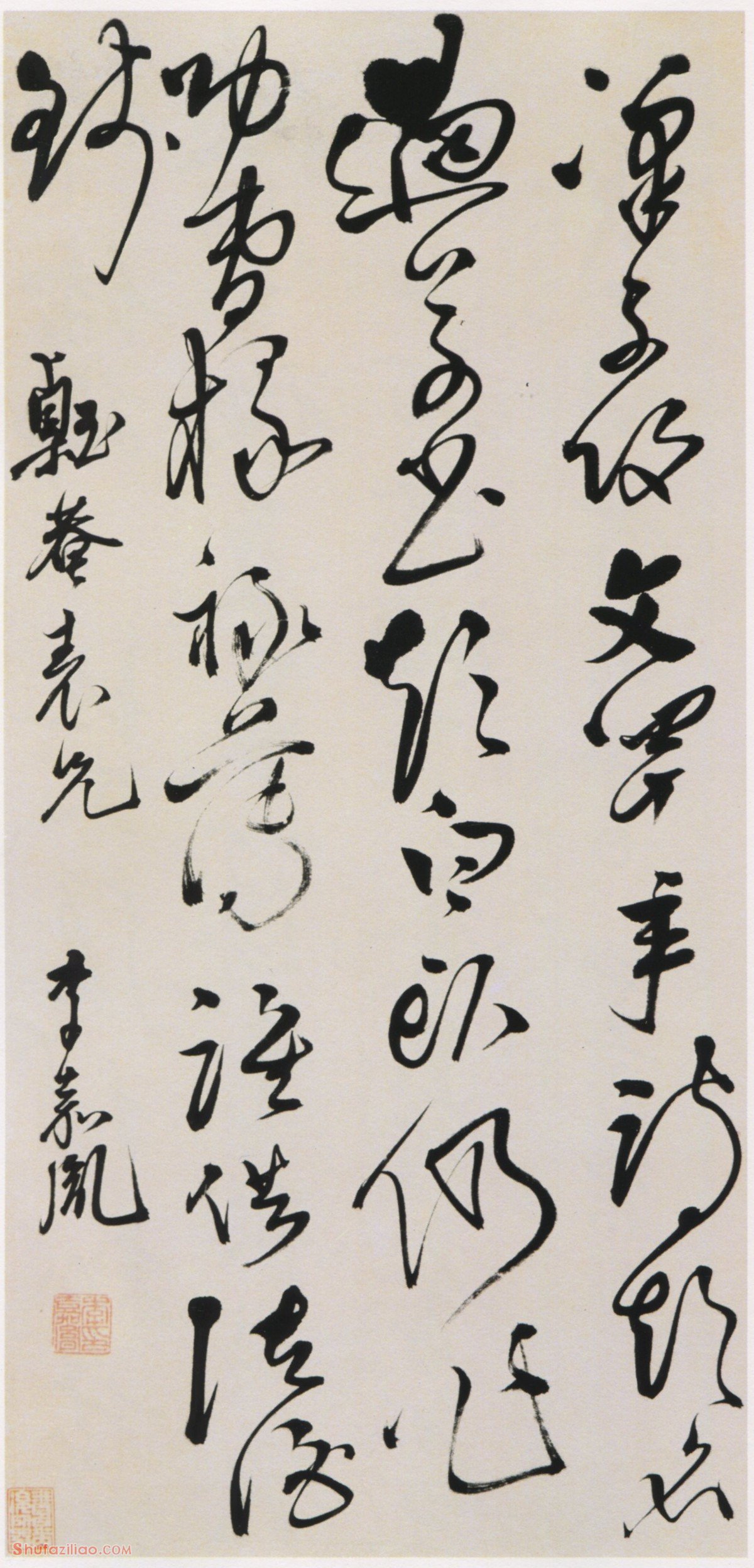 李嘉胤《草书贾至赠陕掾梁宏诗轴》纸本草书 57.1×27.8cm 苏州博物馆藏