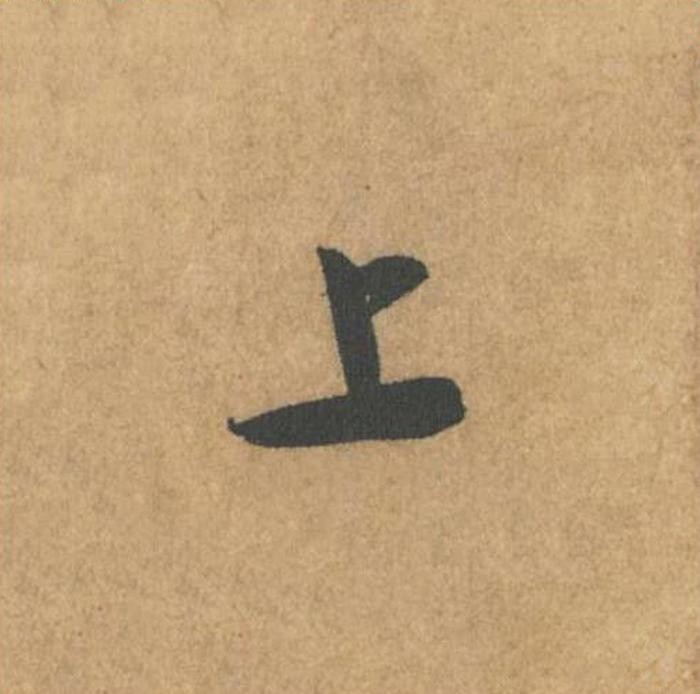 (上)毛笔行书写法,摘自米芾《竹前槐后诗卷》第0032字:上